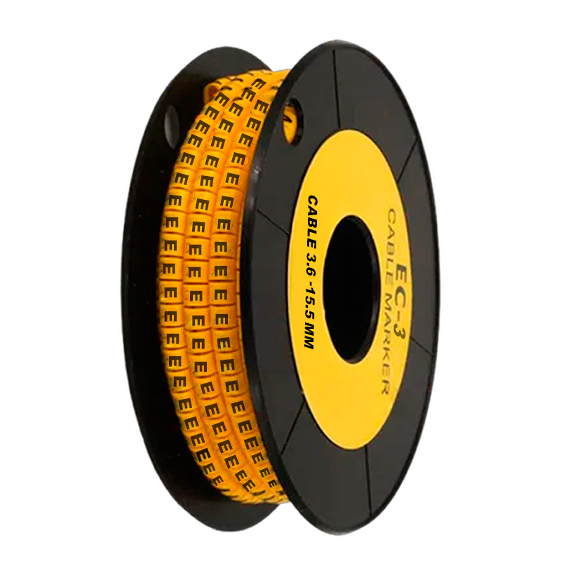 Marcador aro EC-3 letra D, color amarillo, para cables de 3.6–15.5 mm. Rollo x 350 unidades.