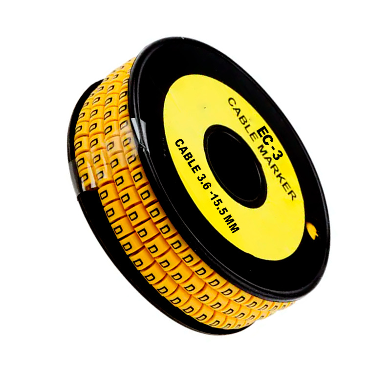 Marcador tipo aro EC-3 letra (Q), diseñado para identificar de forma clara y ordenada cables con un diámetro de 3.6 a 15.5 mm. Fabricado en material plástico flexible y resistente al desgaste, aceite, humedad y temperaturas elevadas. Su color amarillo brillante garantiza alta visibilidad, y la impresión de la letra “Q” permite una codificación efectiva en instalaciones eléctricas e industriales. Se presenta en rollo de 350 unidades, ideal para trabajos continuos y profesionales.