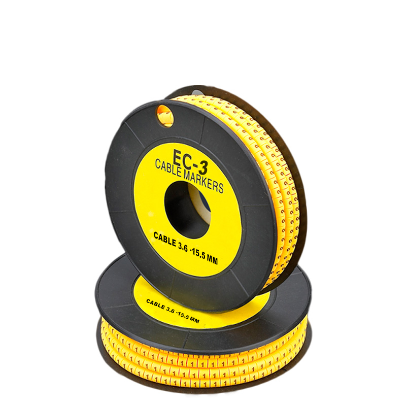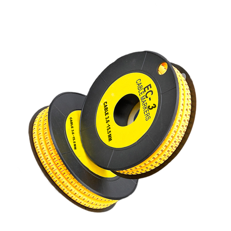 Marcador aro EC-3 letra S, color amarillo, para cables de 3.6–15.5 mm. Rollo x 350 unidades.