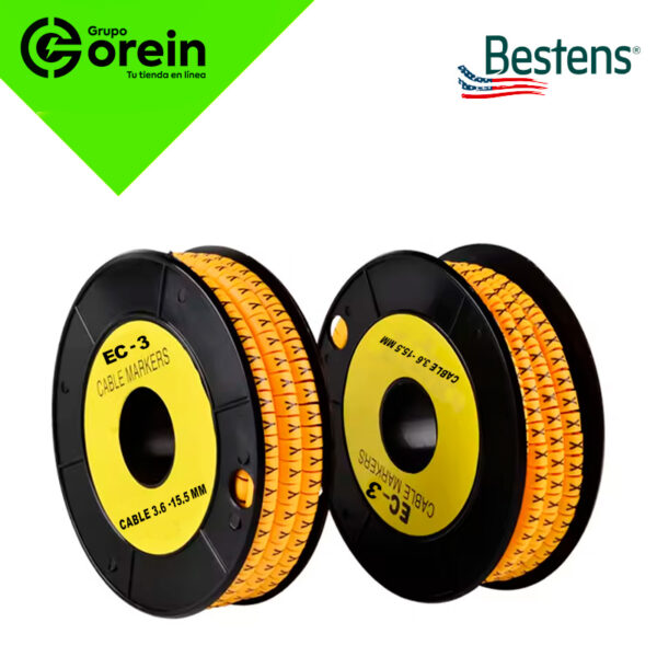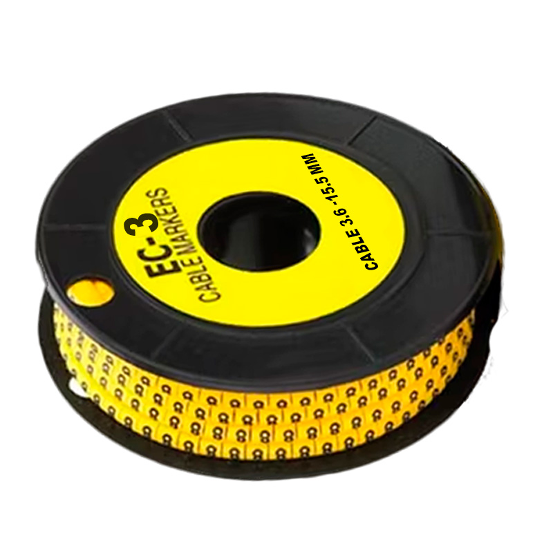 Marcador tipo aro EC-3 letra (V), diseñado para identificar de forma clara y ordenada cables con un diámetro de 3.6 a 15.5 mm. Fabricado en material plástico flexible y resistente al desgaste, aceite, humedad y temperaturas elevadas. Su color amarillo brillante garantiza alta visibilidad, y la impresión de la letra “V” permite una codificación efectiva en instalaciones eléctricas e industriales. Se presenta en rollo de 350 unidades, ideal para trabajos continuos y profesionales.