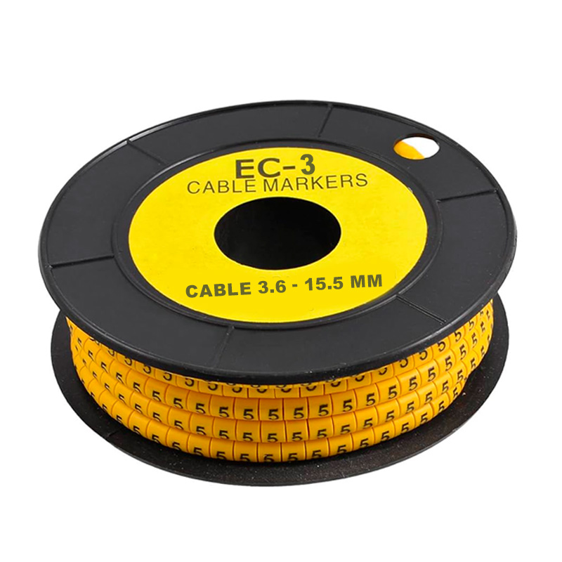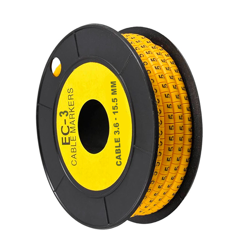 Marcador aro EC-3 número 0, amarillo, para cables de 3.6–15.5 mm. Rollo x 350 unidades.
