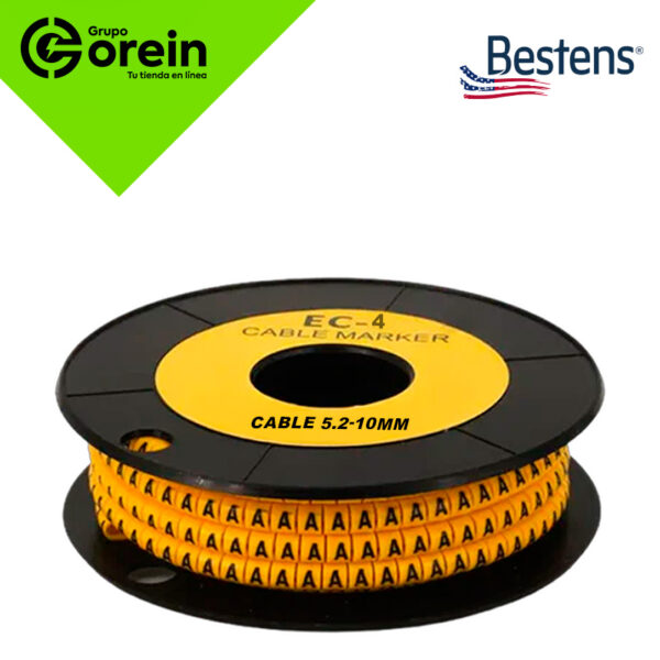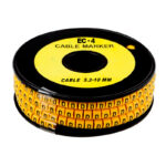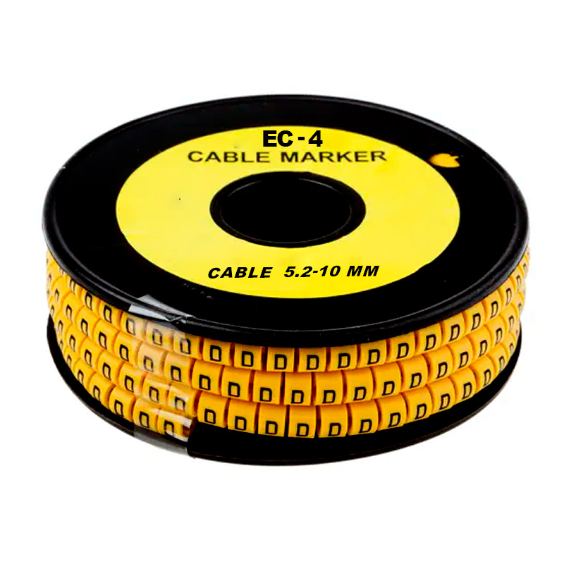 Marcador tipo aro EC-4 con letra (C), ideal para la identificación de cables con un diámetro de 5.2 a 10 mm. Fabricado en plástico de alta calidad, resistente a aceites, humedad y temperaturas elevadas. Su diseño tipo aro permite una instalación rápida y segura, mientras que el color amarillo con impresión en negro garantiza una excelente visibilidad. Presentado en rollo de 250 unidades, es perfecto para entornos eléctricos industriales y comerciales donde se requiere organización y codificación eficiente.