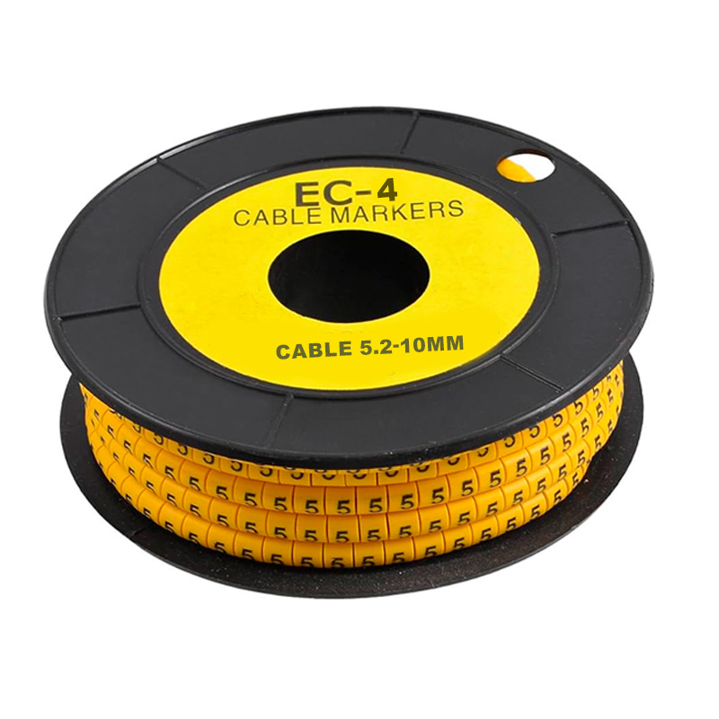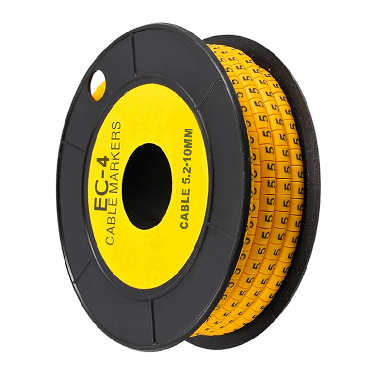 Marcador tipo aro EC-4 con NUMERO (6), ideal para la identificación de cables con un diámetro de 5.2 a 10 mm. Fabricado en plástico de alta calidad, resistente a aceites, humedad y temperaturas elevadas. Su diseño tipo aro permite una instalación rápida y segura, mientras que el color amarillo con impresión en negro garantiza una excelente visibilidad. Presentado en rollo de 250 unidades, es perfecto para entornos eléctricos industriales y comerciales donde se requiere organización y codificación eficiente.