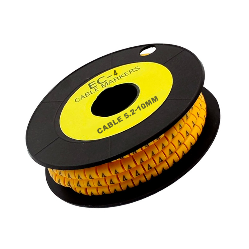 Marcador tipo aro EC-4 con NUMERO (7), ideal para la identificación de cables con un diámetro de 5.2 a 10 mm. Fabricado en plástico de alta calidad, resistente a aceites, humedad y temperaturas elevadas. Su diseño tipo aro permite una instalación rápida y segura, mientras que el color amarillo con impresión en negro garantiza una excelente visibilidad. Presentado en rollo de 250 unidades, es perfecto para entornos eléctricos industriales y comerciales donde se requiere organización y codificación eficiente.