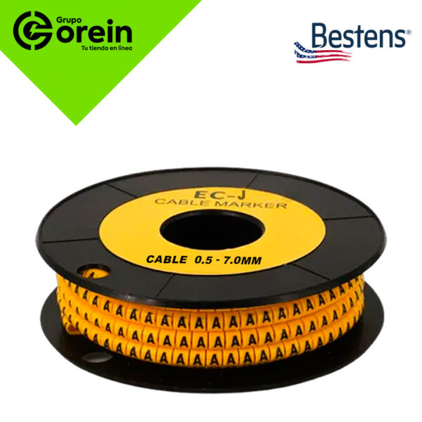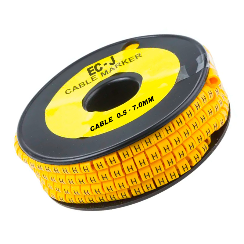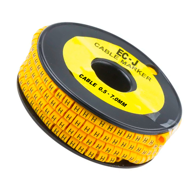 Marcador plano EC-J (D) amarillo, para cables 0.5–7.0 mm, bolsa x 500 unidades.