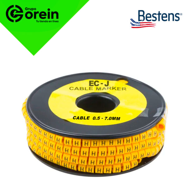 Marcador tipo plano EC-J con letra (D), ideal para la identificación de cables de 0.5 a 7.0 mm de diámetro. Fabricado en material resistente de color amarillo, diseñado para aplicaciones eléctricas e industriales. Presentación en paquetes de 500 unidades.