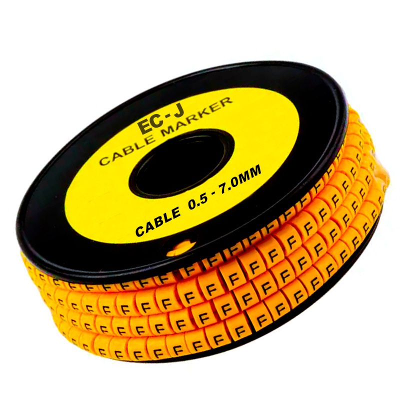 Marcador plano EC-J (J) amarillo, para cables 0.5–7.0 mm, bolsa x 500 unidades.