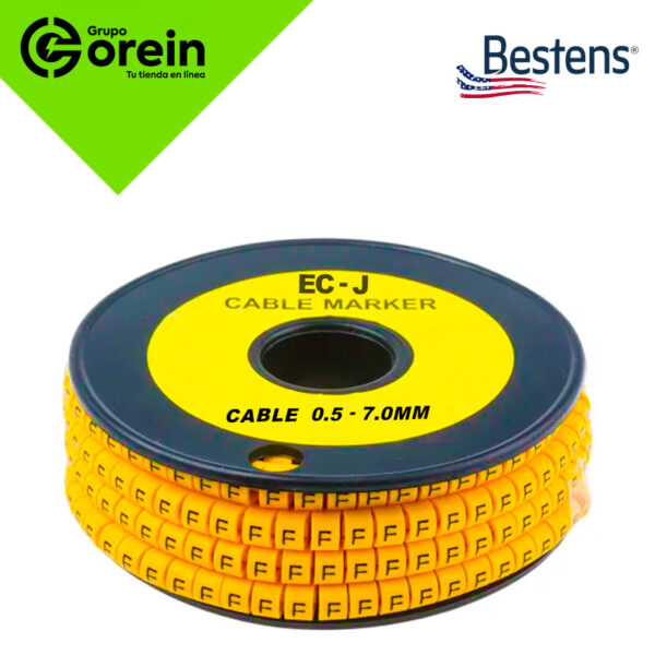Marcador tipo plano EC-J con letra (K), ideal para la identificación de cables de 0.5 a 7.0 mm de diámetro. Fabricado en material resistente de color amarillo, diseñado para aplicaciones eléctricas e industriales. Presentación en paquetes de 500 unidades.