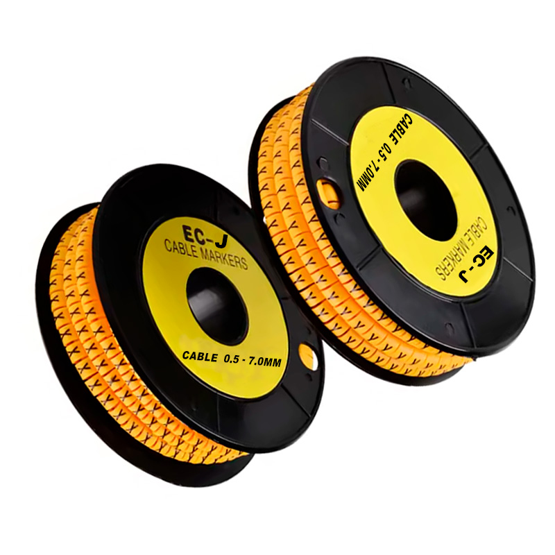 Marcador plano EC-J (O) amarillo, para cables 0.5–7.0 mm, bolsa x 500 unidades.