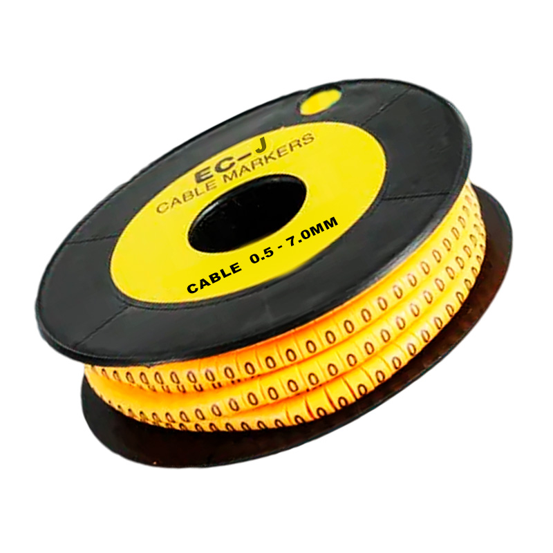 Marcador plano EC-J (Q) amarillo, para cables 0.5–7.0 mm, bolsa x 500 unidades.