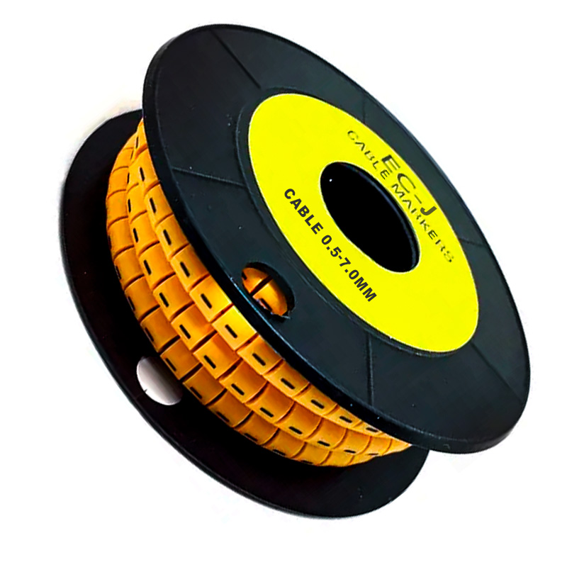 Marcador tipo plano EC-J con SIGNO (/), ideal para la identificación de cables de 0.5 a 7.0 mm de diámetro. Fabricado en material resistente de color amarillo, diseñado para aplicaciones eléctricas e industriales. Presentación en paquetes de 500 unidades.