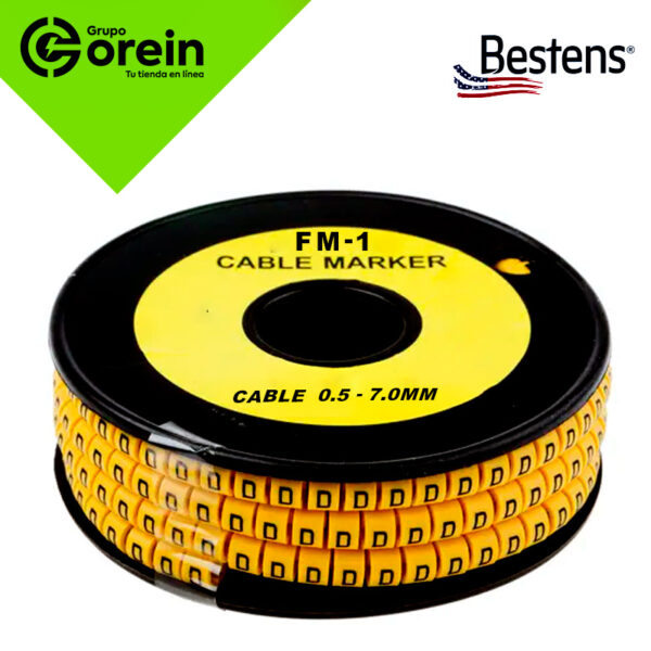 Marcador tipo plano FM con letra (B), ideal para la identificación rápida y ordenada de cables eléctricos, de red o telecomunicaciones. Compatible con diámetros de cable entre 0.5 y 7.0 mm. Fabricado en material resistente, color amarillo de alta visibilidad. Presentación en empaque de 500 unidades, pensado para uso profesional en instalaciones eléctricas o sistemas de cableado estructurado.