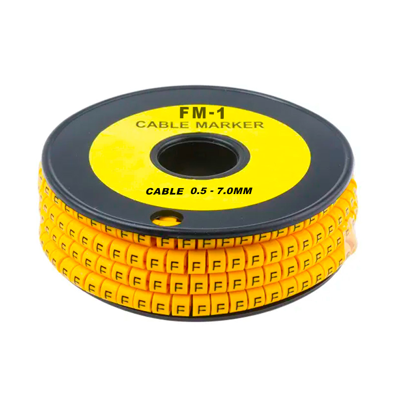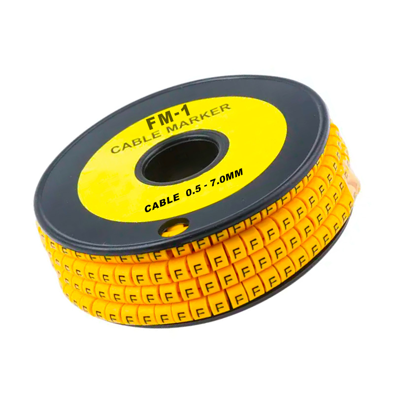 Marcador tipo plano FM con letra (F), ideal para la identificación rápida y ordenada de cables eléctricos, de red o telecomunicaciones. Compatible con diámetros de cable entre 0.5 y 7.0 mm. Fabricado en material resistente, color amarillo de alta visibilidad. Presentación en empaque de 500 unidades, pensado para uso profesional en instalaciones eléctricas o sistemas de cableado estructurado.