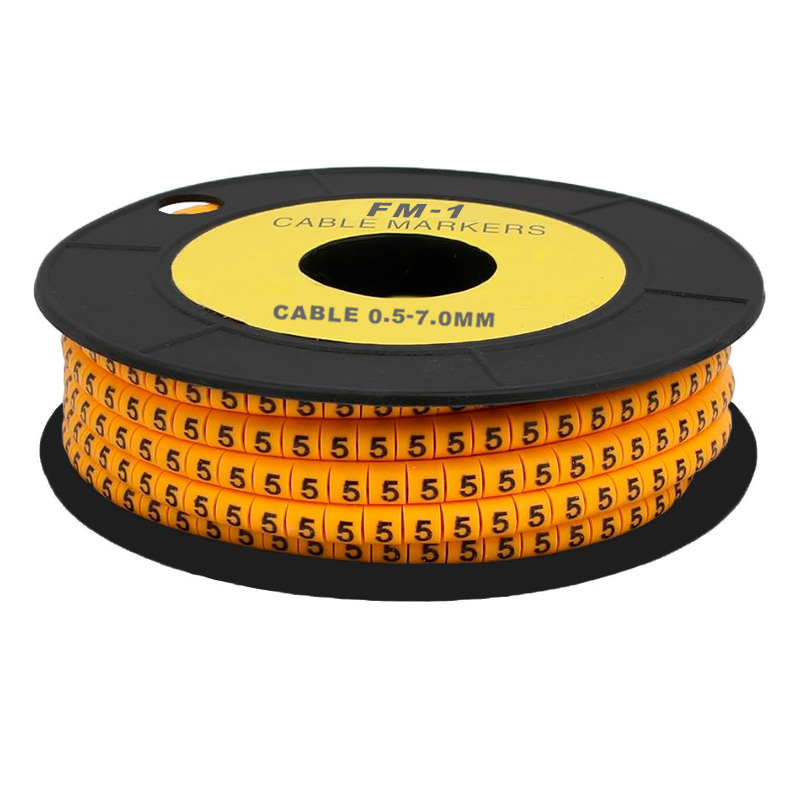 Marcador tipo plano FM con número (3), diseñado para identificar cables de forma clara y ordenada. Compatible con diámetros de cable de 0.5 a 7.0 mm, ideal para instalaciones eléctricas, redes y telecomunicaciones. Fabricado en material resistente, color amarillo de alta visibilidad, con grabado duradero. Presentación de 500 unidades, adecuada para trabajos profesionales o industriales.