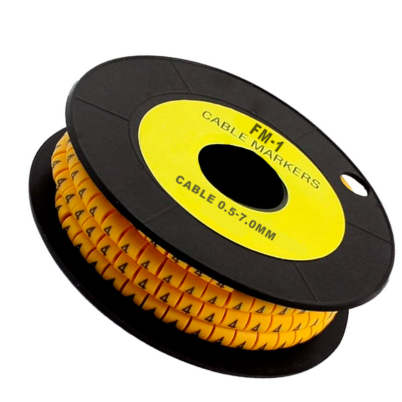 Marcador tipo plano FM con número (7), diseñado para identificar cables de forma clara y ordenada. Compatible con diámetros de cable de 0.5 a 7.0 mm, ideal para instalaciones eléctricas, redes y telecomunicaciones. Fabricado en material resistente, color amarillo de alta visibilidad, con grabado duradero. Presentación de 500 unidades, adecuada para trabajos profesionales o industriales.