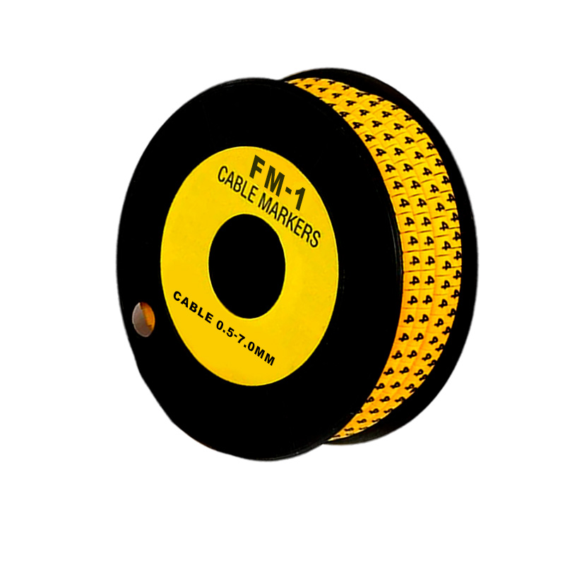 Marcador tipo plano FM con número (8), diseñado para identificar cables de forma clara y ordenada. Compatible con diámetros de cable de 0.5 a 7.0 mm, ideal para instalaciones eléctricas, redes y telecomunicaciones. Fabricado en material resistente, color amarillo de alta visibilidad, con grabado duradero. Presentación de 500 unidades, adecuada para trabajos profesionales o industriales.