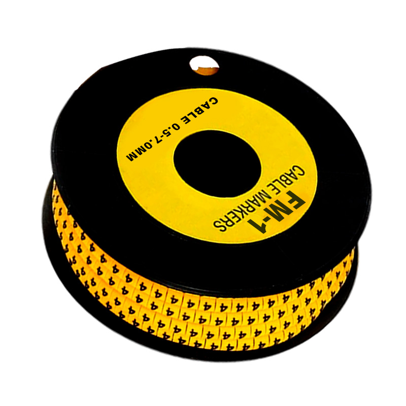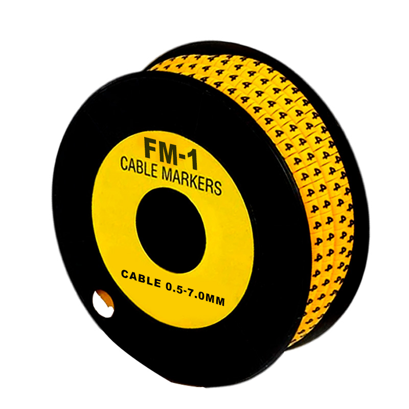 Marcador tipo plano FM con número (9), diseñado para identificar cables de forma clara y ordenada. Compatible con diámetros de cable de 0.5 a 7.0 mm, ideal para instalaciones eléctricas, redes y telecomunicaciones. Fabricado en material resistente, color amarillo de alta visibilidad, con grabado duradero. Presentación de 500 unidades, adecuada para trabajos profesionales o industriales.