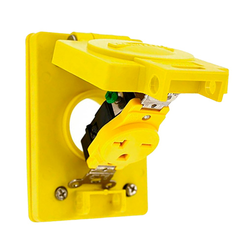 Con una tomacorriente integrada, diseñada para resistir la humedad y el polvo. Se utiliza para conectar dispositivos eléctricos en áreas húmedas o con riesgo de salpicaduras, ofreciendo una protección adicional contra la entrada de agua.