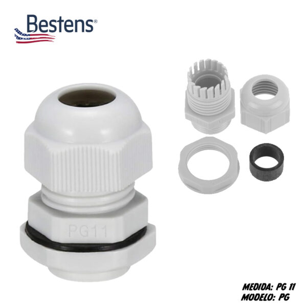 Prensaestopa de nylon tipo pg 11 ip68 blanco ul (long.rosc.8mm) cable 5-10