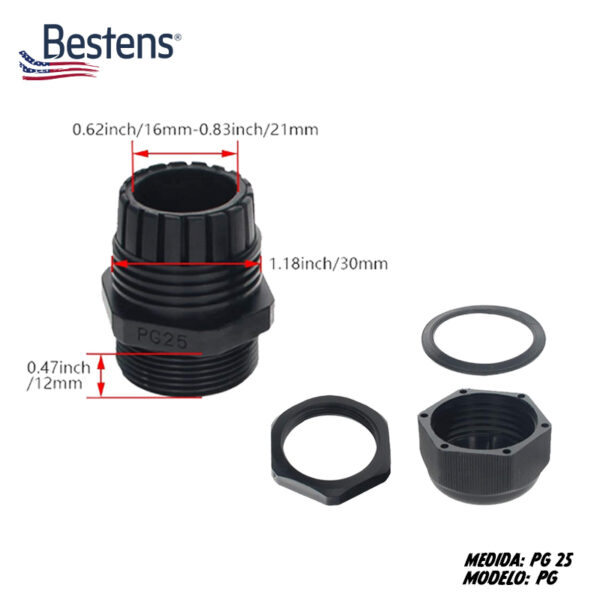 Prensaestopa de nylon tipo pg 29 ip68 negro ul (long.rosc.12mm) cable 18-25