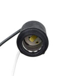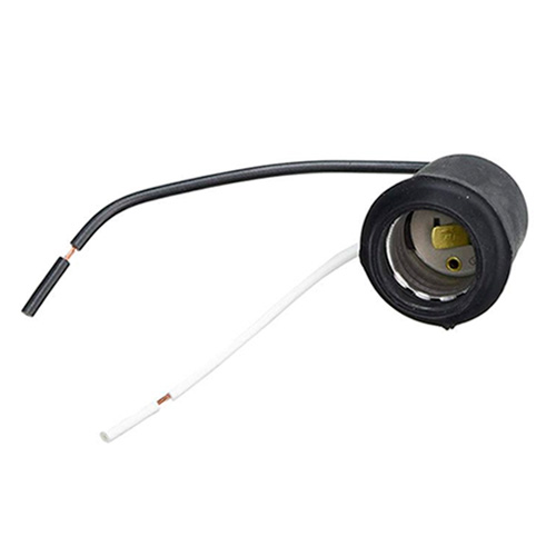 Portalámparas incandescente, base mediana, circuito simple, 660W-250V; caucho negro; con hombro para pantalla tipo abrazadera; con dos cables negros y blancos de 16AWG de 6 pulgadas, extremos libres pelados 3/4 de pulgada.