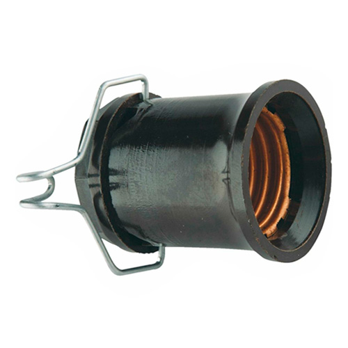 Portalámparas incandescente de base mediana, de dos piezas, sin llave, fenólico, tipo clavija, circuito único, de paso, incluye gancho – Negro