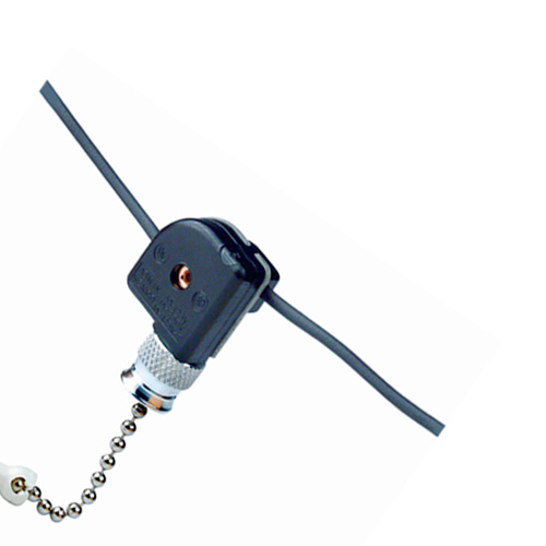 Interruptor de cadena, unipolar encendido-apagado; 1 A-125 V T, 3 A-125 V, 1 A-250 V; con dos cables negros de 6 pulgadas, calibre 18 AWG AWM TEW 105C, 600 V, pelados 1/2 pulgada.