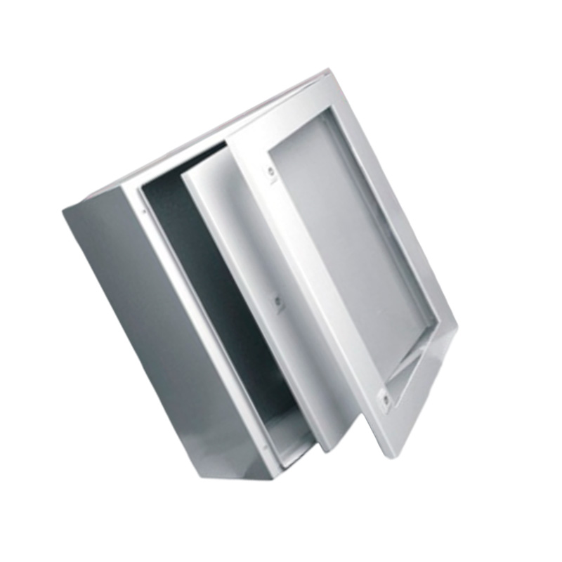 Tablero eléctrico metálico de dimensiones 400x400x200mm, con un diseño de doble puerta que combina funcionalidad y seguridad. La puerta exterior de plexiglás permite la visualización del interior del tablero, mientras que la puerta interior metálica ofrece una protección adicional para los componentes eléctricos. Ideal para instalaciones donde se requiere un fácil acceso visual y una protección robusta.