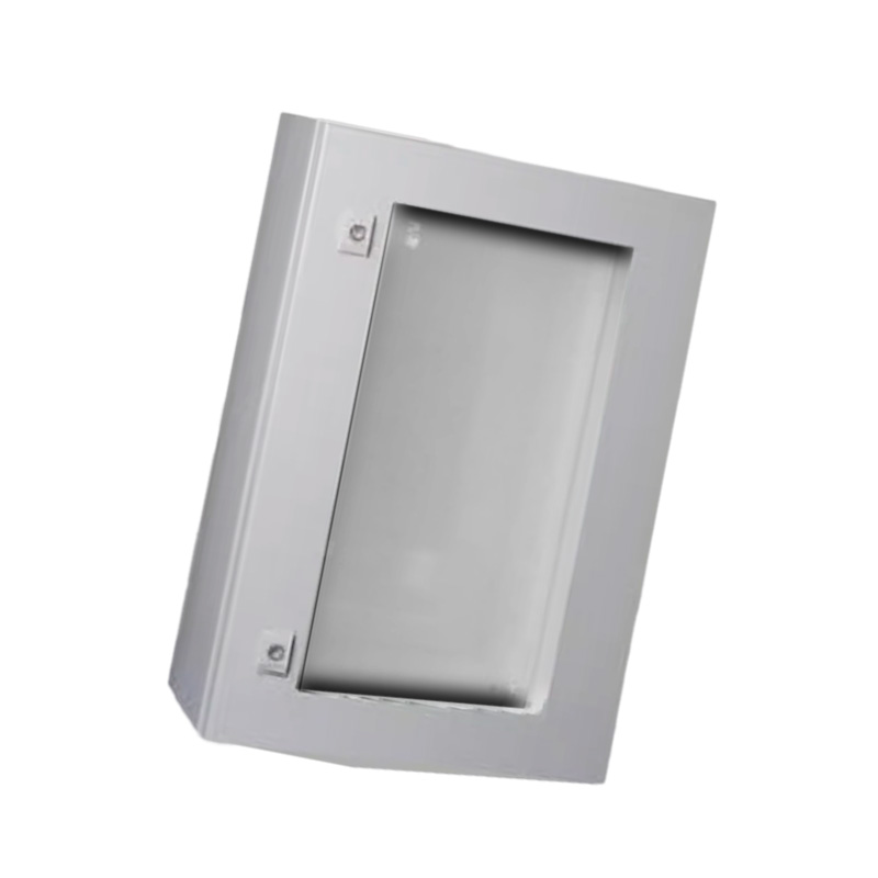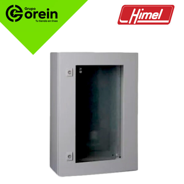 Tablero eléctrico metálico (500x400x200mm) con puerta de plexiglás y puerta interior metálica. Visualización segura y protección robusta.
