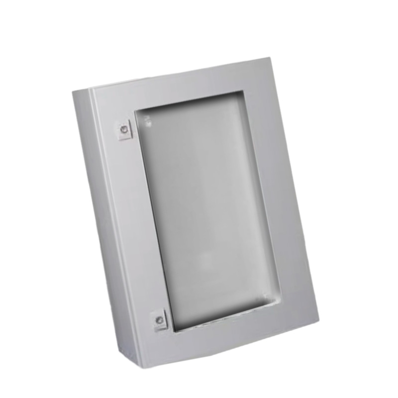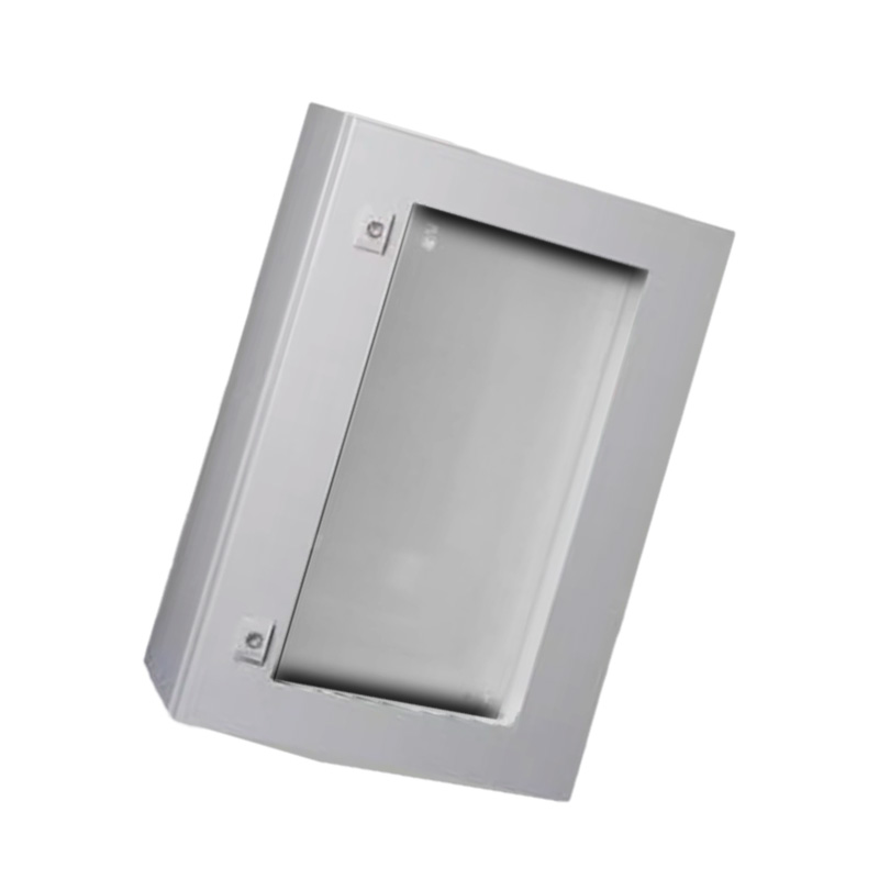 Tablero metálico (600x500x250mm) con puerta plexiglás y puerta interior metálica. Espacioso, seguro y con excelente visibilidad.