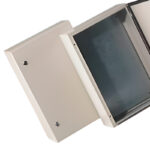 Tablero eléctrico metálico para adosar de grandes dimensiones (1400x1000x300mm), diseñado para instalaciones industriales que requieren un espacio considerable y una alta protección. Su grado de protección IP66 y su acabado en RAL7035 (gris) aseguran una resistencia excepcional a la intemperie y la corrosión. Ideal para aplicaciones que demandan una gran capacidad de instalación de componentes eléctricos y una protección superior contra los elementos.