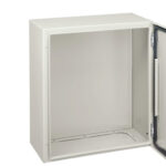 Tablero metálico adosable para montaje en superficie, 600x600x200mm, con protección IP65, color RAL7035, y espacio para placa de circuito impreso (PCB)
