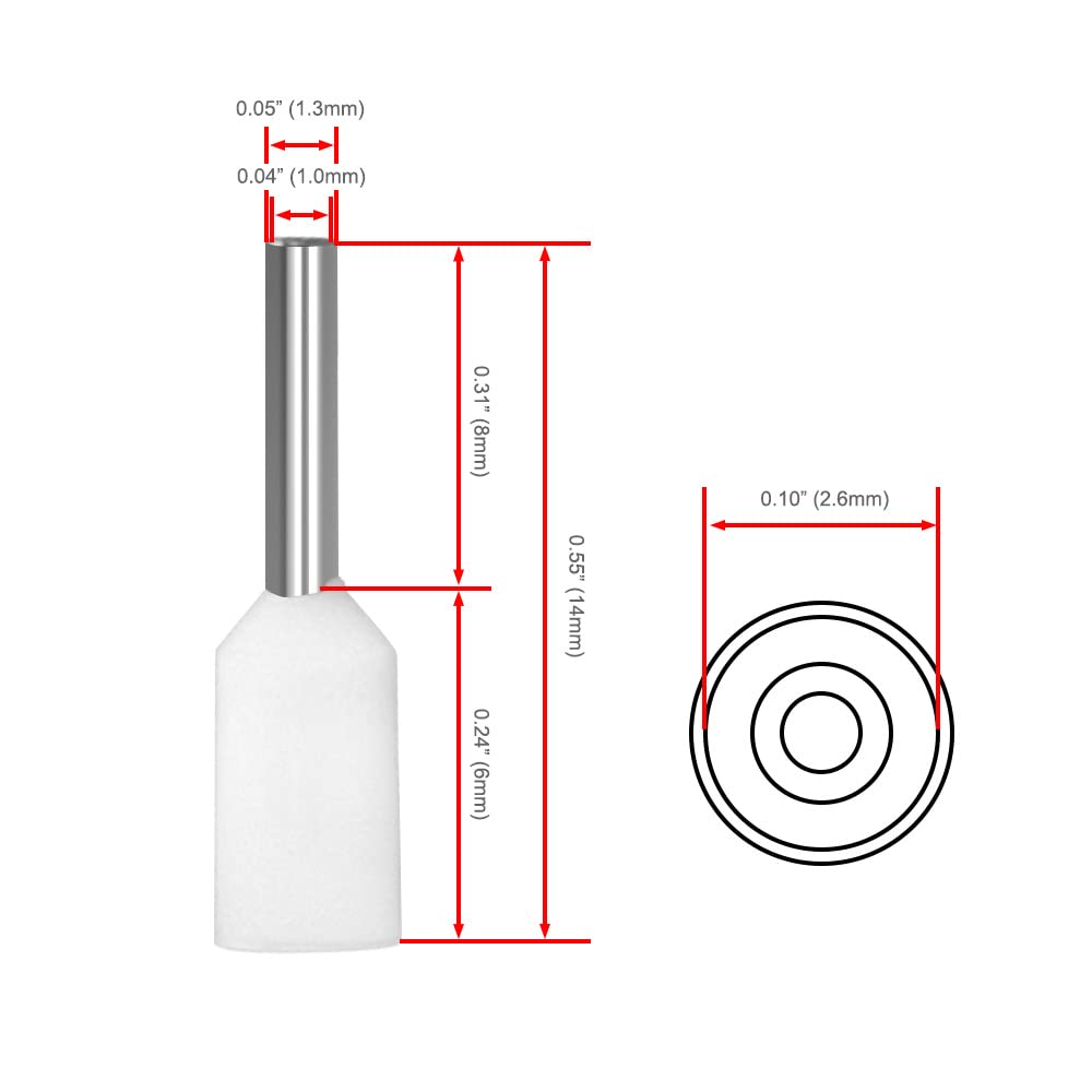 Terminal sobremoldeado tubular blanco (dim. 12.0) #20 awg (0.75mm2) x 100u