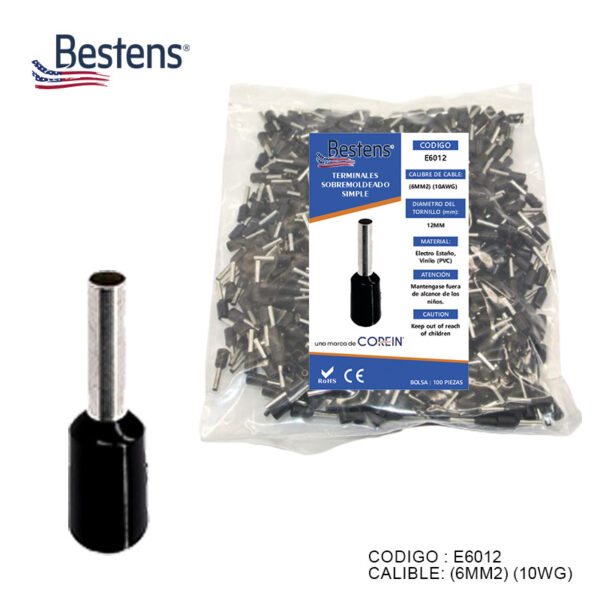 Terminales, Terminales de extremo de cable, Terminal de extremo de cable, , Ferrule de nylon aislado, Ferrules aislados, Manga de extremo din de un solo cable, Manguitos de extremo estañados de cobre, Terminales de crimpado, Conectores eléctricos, Terminales de alambre, Terminales eléctricos.