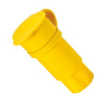 Una toma de corriente eléctrica resistente al agua, diseñada para uso en exteriores o entornos húmedos, con características específicas que la hacen ideal para aplicaciones industriales o comerciales.