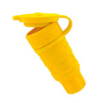 Una toma de corriente eléctrica industrial de alta calidad, diseñada para uso en exteriores o entornos húmedos, con características específicas que la hacen ideal para aplicaciones industriales o comerciales.