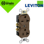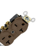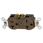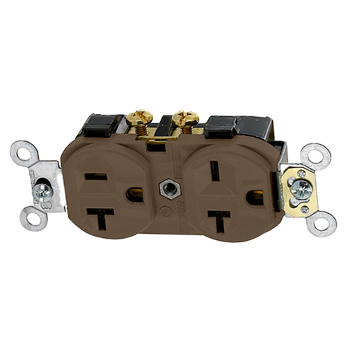 15 A, 250 V, NEMA 615R, 2P, 3W, Receptáculo dúplex de cuerpo estrecho, hoja recta, uso comercial, puesta a tierra automática, Canadiense, , Cableado lateral, correa de acero, Brown