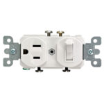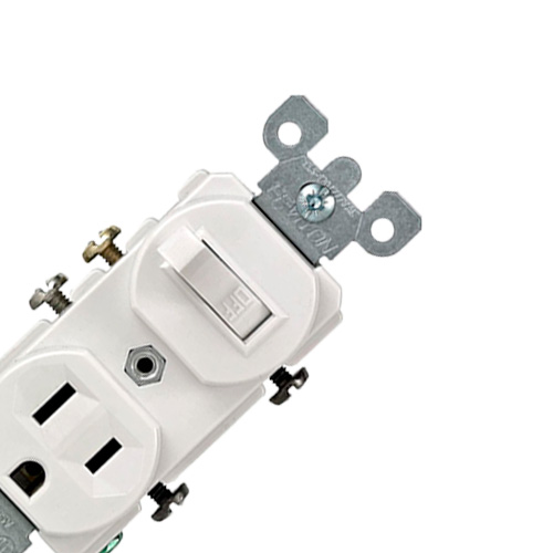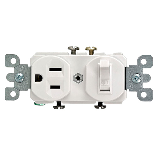 15 A, 120 V, Interruptor de combinación de CA unipolar de estilo dúplex/515R, uso comercial, Conexión a tierra, Cableado lateral, White