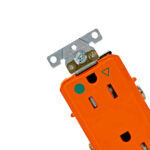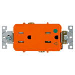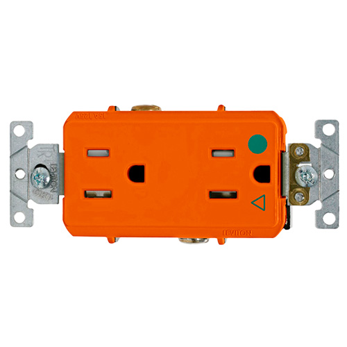 Conexión a tierra aislada Decora Plus, Receptáculo dúplex/tomacorriente, Grado hospitalario para trabajos pesados, Superficie suave, 15 A, 125 V, Cableado posterior y lateral, NEMA 5-15R, dos polos, 3 conductores, puesta a tierra automática – Naranja