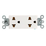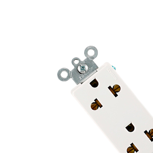 15 A, 125/250 V, NEMA 5-15R, 2P, 3W, CEE 7/16 (Europlug 2,5 A/250 V sin conexión a tierra), Receptáculo dúplex universal Decora Plus, hoja recta, uso comercial, Cableado posterior y lateral, correa de acero, Paquete a granel, 10 piezas por caja, 50 por caja a granel: BLANCO