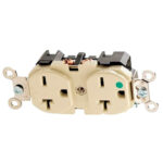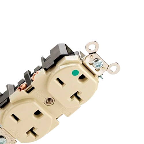 20 A, 250 V, NEMA 620R, 2P, 3W, Receptáculo dúplex de cuerpo ancho, hoja recta, Grado hospitalario, puesta a tierra automática, , Cableado de alimentación continua posterior y lateral de ocho orificios, Brass Strap  IVORY