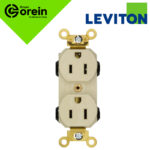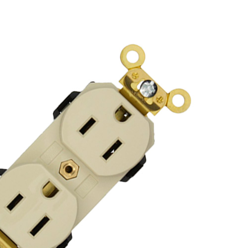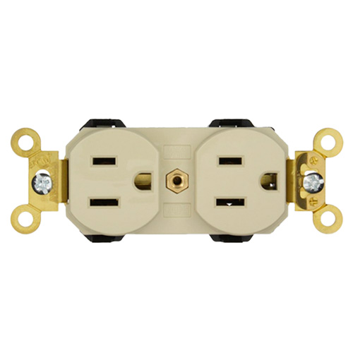 Receptáculo dúplex/tomacorriente, Grado de especificación industrial para trabajos extrapesados, Superficie suave, 15 A, 125 V, Cableado posterior y lateral, NEMA 515R, dos polos, 3 conductores, puesta a tierra automática – Marfil