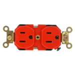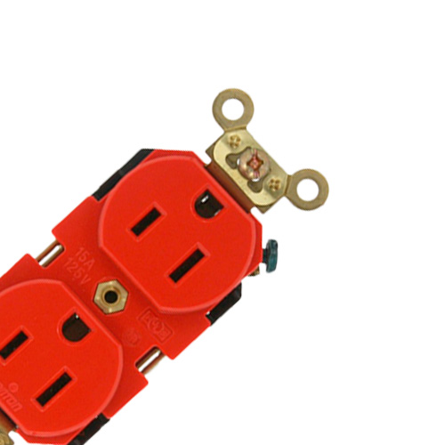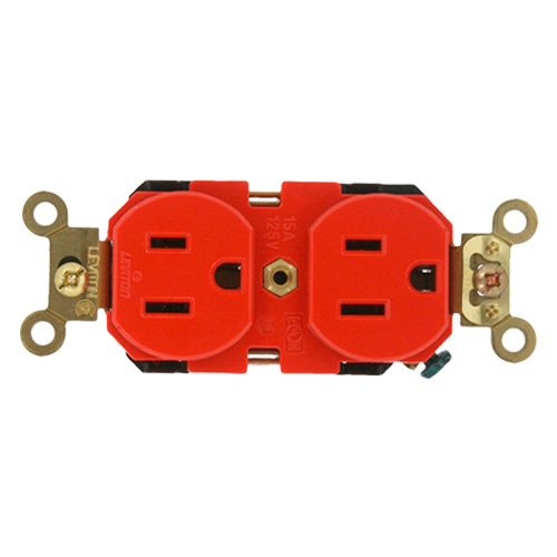 15 A, 125 V, NEMA 515R, 2P, 3W, Grado de uso rudo extra serie industrial, Receptáculo dúplex, hoja recta, puesta a tierra automática, Cableado de alimentación continua posterior y lateral de ocho orificios, correa de latón, RED
