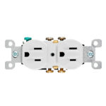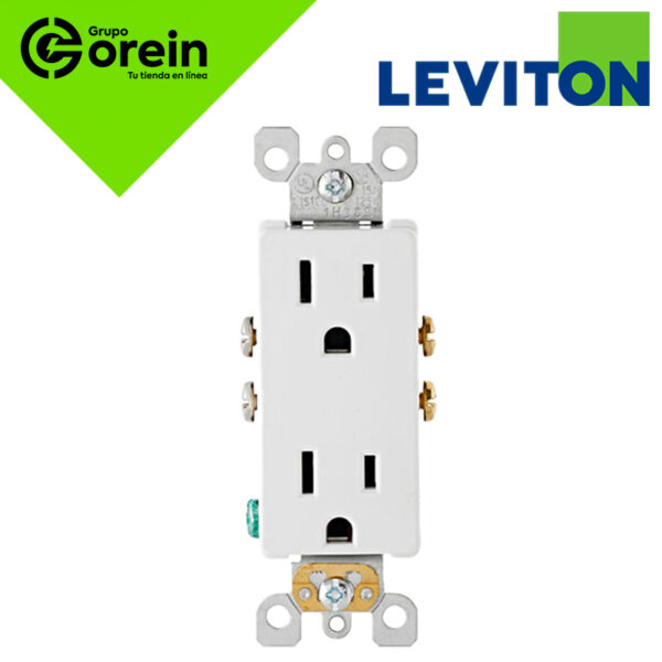El catálogo completo de receptáculos de grado residencial de Leviton incluye productos clasificados para todas las aplicaciones residenciales en distintas configuraciones estándar. Se fabrican en una gran variedad de colores, tanto en los estilos tradicionales como en el estilo Decora. Todos los receptáculos dúplex están diseñados con una construcción termoplástica y de superficie para proporcionar el máximo espacio para el cableado. Cada dúplex está equipado también con orejas y lengüetas de yeso rompibles, para permitir una alineación fácil y la conversión a dos circuitos.