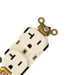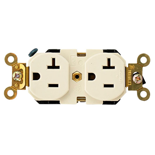 Receptáculo dúplex/tomacorriente, grado de especificación industrial para trabajos extrapesados, cara lisa, 20 A, 125 V, cableado lateral o posterior, NEMA 5-20 R, 2 polos, 3 hilos, puesta a tierra automática – Marfil