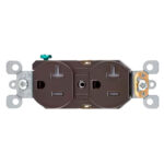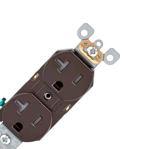 15 A, 125 V, NEMA 515R, 2P, 3W, Receptáculo dúplex de cuerpo estrecho, hoja recta, Grado hospitalario, puesta a tierra aislada, , Cableado posterior y lateral, Nickel Plated Steel Strap BROWN
