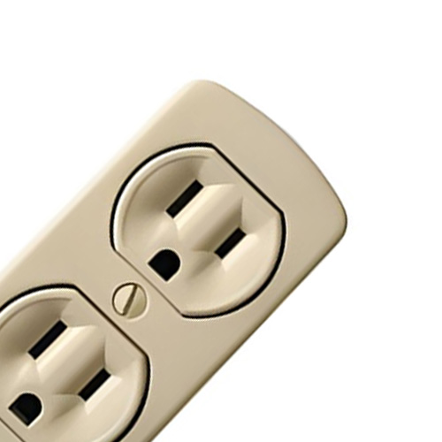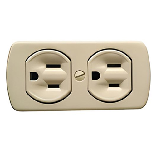 Tomacorriente doble 2x15A+T para 125/250V. Cuerpo de termoplástico de color marfil bajo la norma NEMA 5-15R. Conexión con todos los enchufes que cumplan la norma NEMA 5-15P. Se recomienda para su instalación conductores de 2.5 a 6mm2. Aplicación: uso residencial para montaje