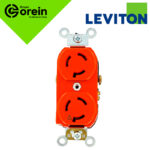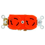 Toma de corriente dúplex con bloqueo, 15 amperios, 125 voltios, NEMA L5-15R, 2 polos, 3 cables, tierra aislada, cable de tierra integral de 6″ (sin tornillo de tierra) – Naranja.