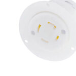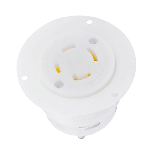 Toma de corriente trifásica empotrada diseñada para aplicaciones de alta potencia con una característica de seguridad. Es una toma de corriente que se instala en una superficie, como una pared o un techo, y luego se cubre con un panel o tapa para una apariencia integrada.
