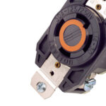 Es un dispositivo eléctrico industrial diseñado para ser instalado en una superficie, generalmente dentro de una caja de pared. Proporciona tres polos de conexión, cada uno capaz de soportar 30 amperios a 250 voltios de corriente alterna. La designación «L14» especifica la configuración de los contactos según la norma NEMA, común en entornos industriales. La inclusión de un seguro mejora la seguridad al prevenir conexiones accidentales. En resumen, es un receptáculo eléctrico de alta potencia y seguridad para uso industrial.